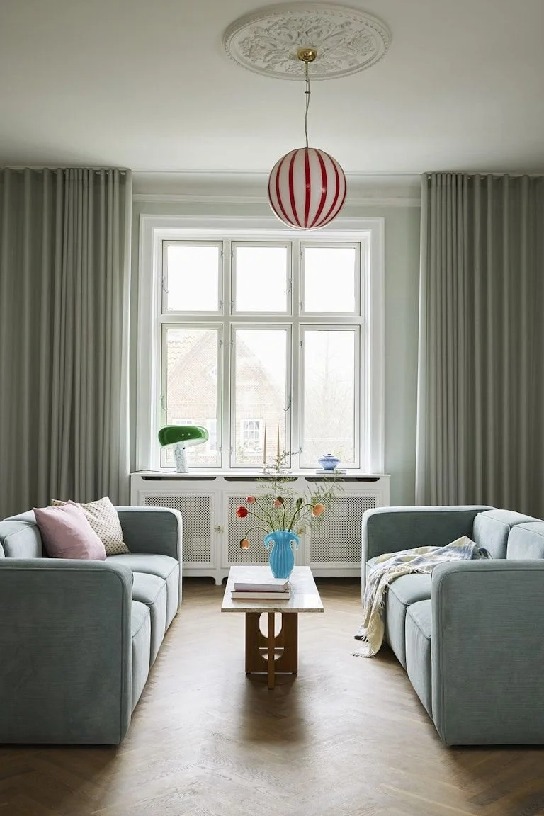 Uno colorato e uno neutro. È la combinazione più intuitiva e anche una delle più eleganti. Il divano neutro lascia spazio al colore di emergere.