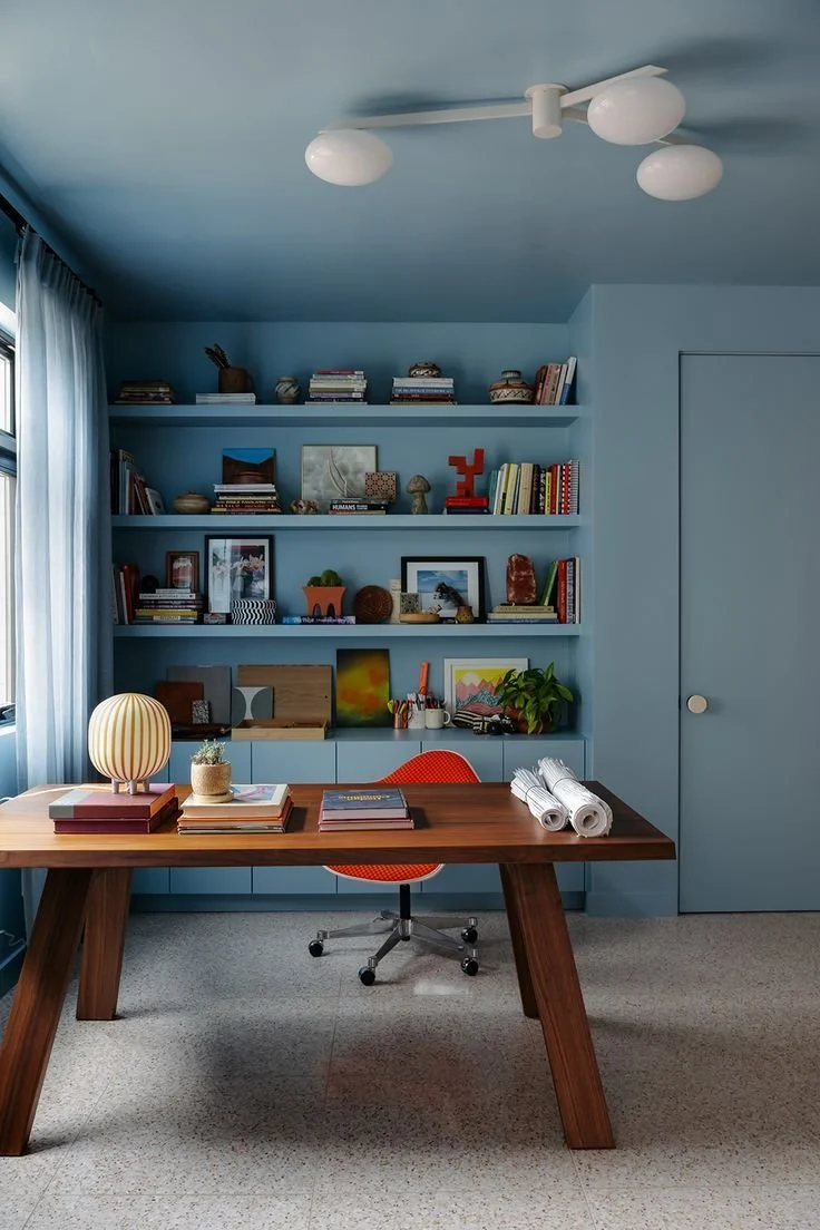Sopra la scrivania, o su una parete dell’ufficio, le mensole in cartongesso permettono di organizzare libri e materiali senza rubare leggerezza allo spazio di lavoro, mantenendo ordine e funzionalità.