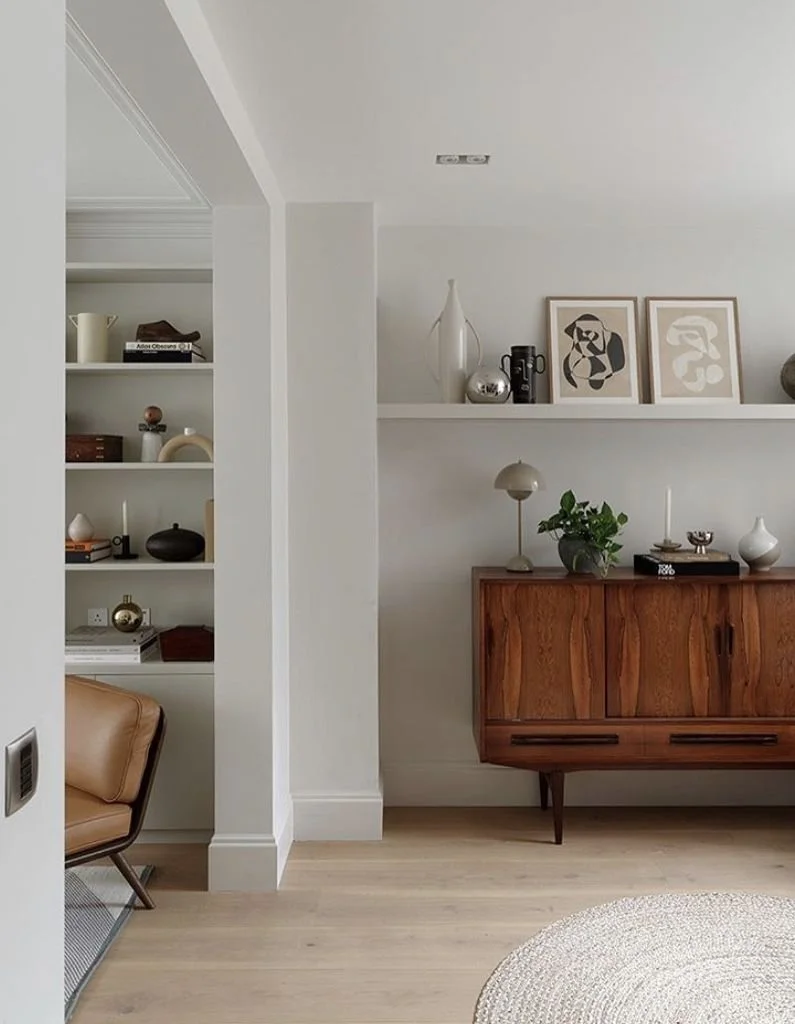 Anche sopra o intorno a un comò, soprattutto se antico, vintage o di famiglia, il cartongesso svolge un ruolo chiave: smorza il contrasto tra passato e presente, alleggerisce la composizione e introduce una nota di modernità.