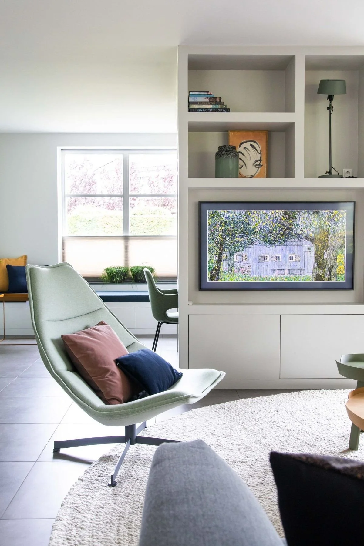 Il cartongesso permette di creare pareti attrezzate su misura, capaci di accogliere TV, libri, lampade e oggetti del cuore.