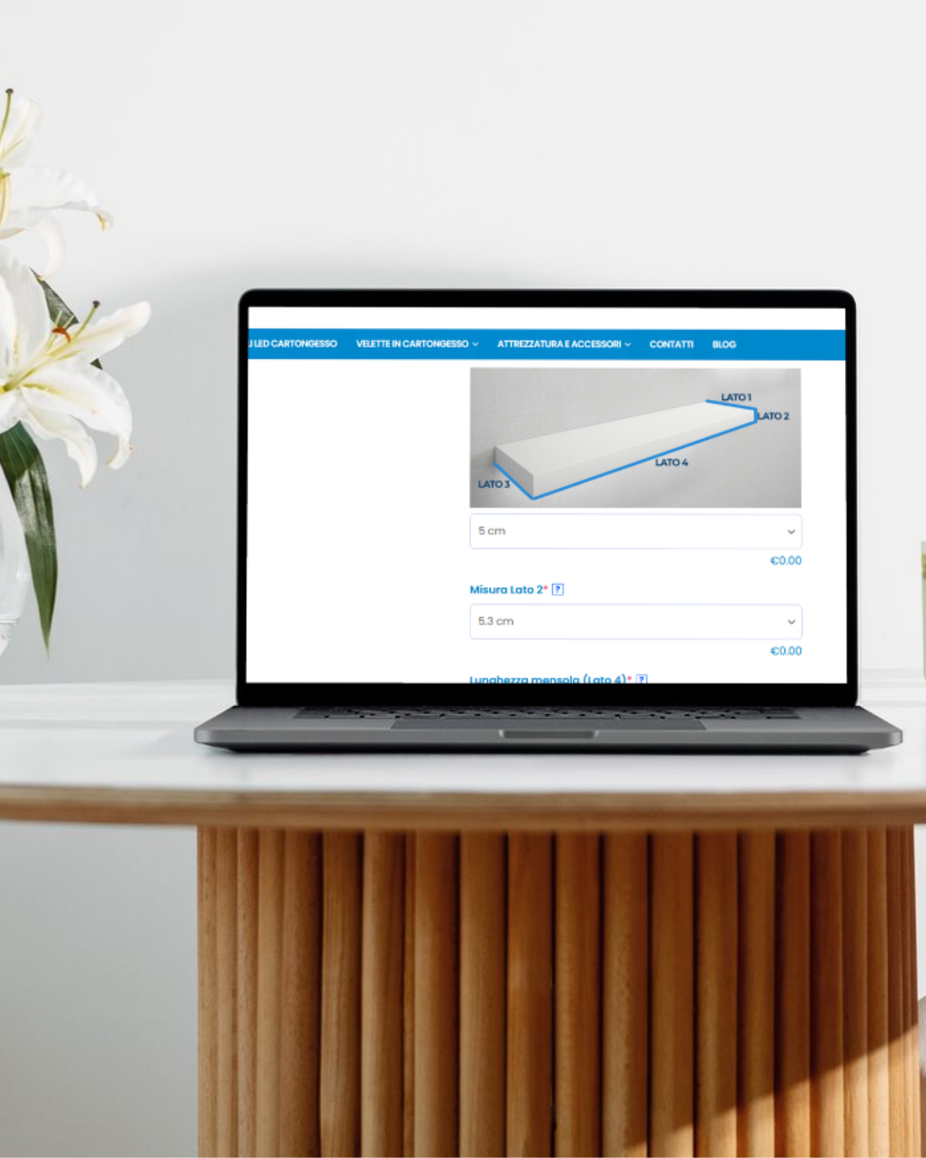 Le mensole, configurabili e pronte da installare, sono acquistabili sul loro sito e puoi aggiungere al carrello anche staffe, binari, stucco e tutto l’occorrente necessario per il tuo progetto.