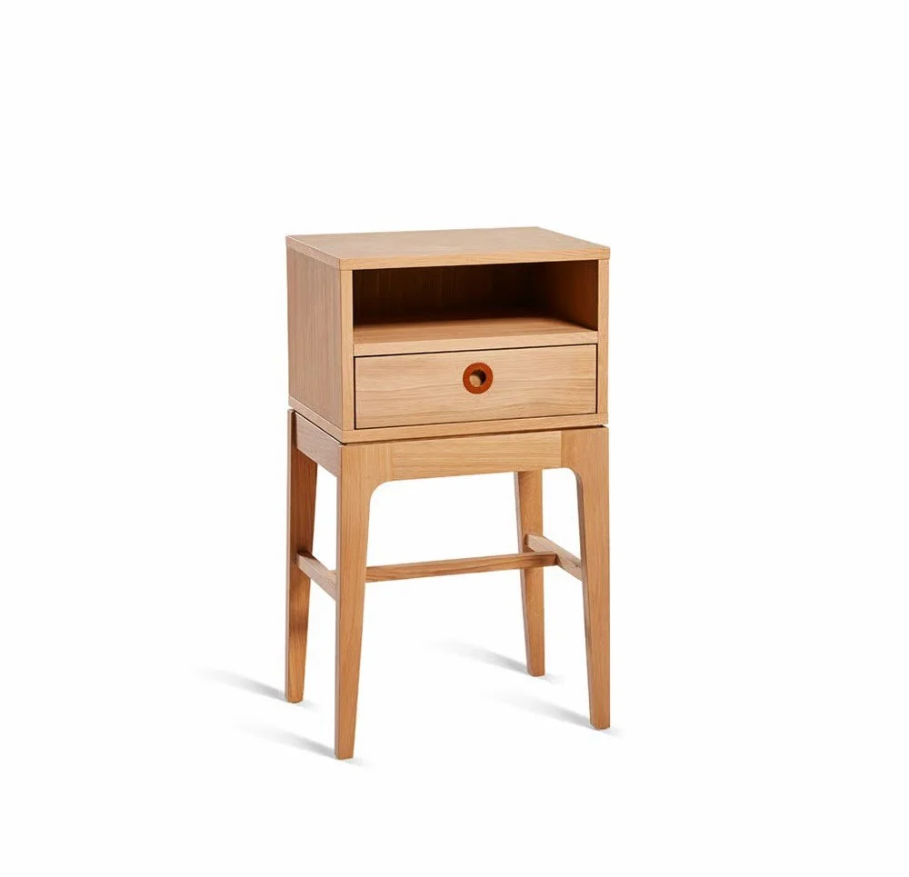 Portobello è un comodino compatto ed essenziale, costruito in rovere massiccio per garantire solidità e un aspetto naturalmente ricercato.