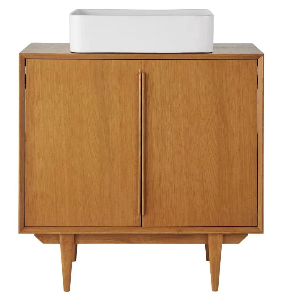 Il mobile Portobello è realizzato in pannelli di fibra a media densità rivestiti d'impiallacciatura di quercia.