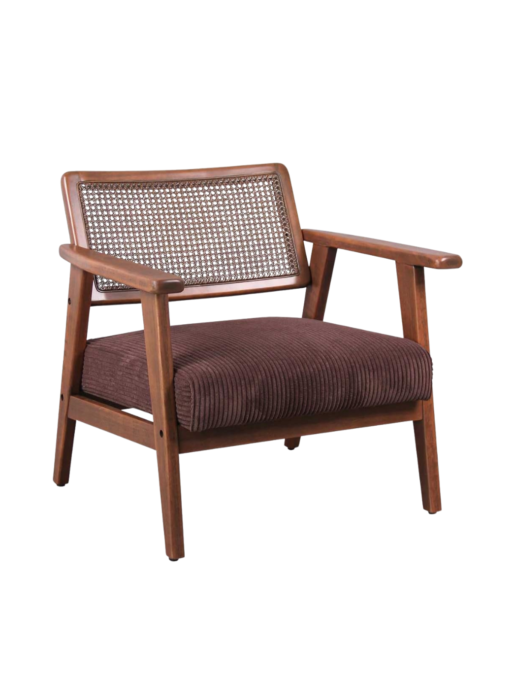 Una poltrona in stile anni 50 dal carattere deciso, con struttura in legno di caucciù sostenibile.