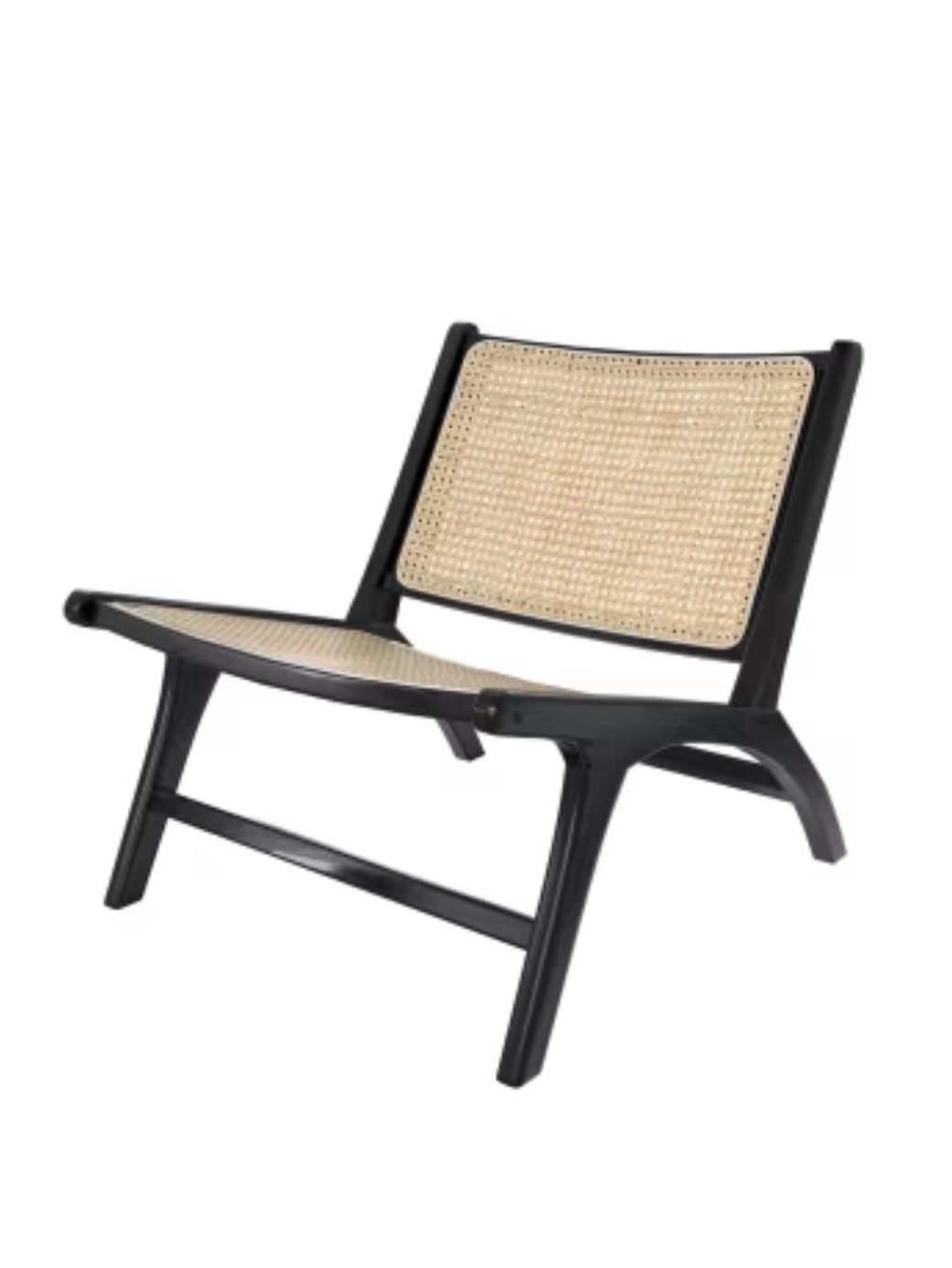 Poltrona in legno massello con inserti in polyrattan (un rattan plastico, perfetto se hai gatti in casa e non vuoi rinunciare al pattern della paglia di Vienna), dal look retrò e leggero.