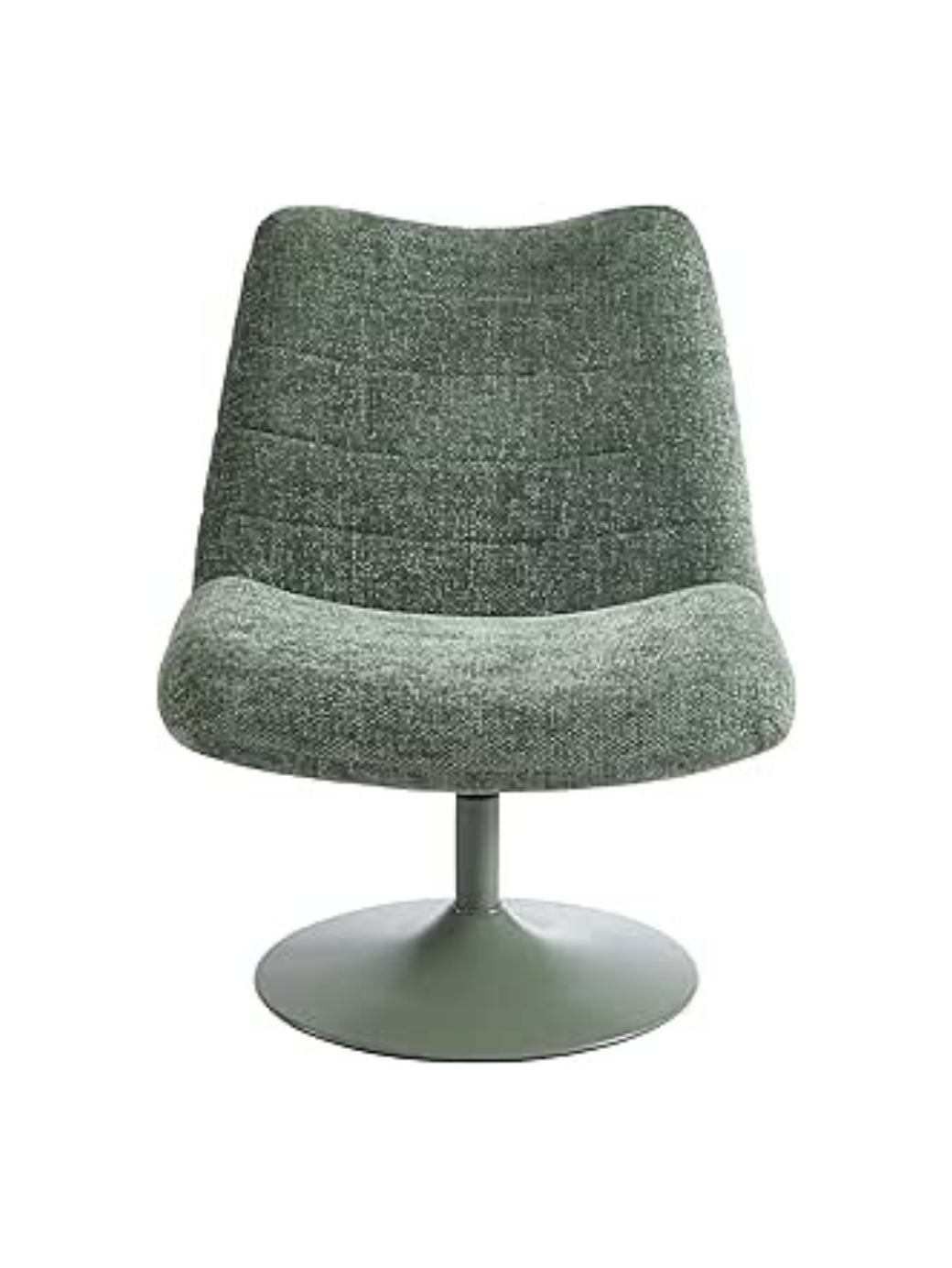 Girevole e reclinabile, con seduta ampia e imbottita per un relax totale. Rivestita in tessuto verde, poggia su una base in metallo in tinta, ispirata alla linea Tulip di Saarinen, che la rende stabile e visivamente pulita.